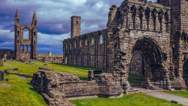 Durante muchos años fue la edificación más grande de toda Escocia. Su suerte es fácil de averiguar por los restos que yacen custodiados por la gran torre que en su día formó parte de la propia construcción. Merece la pena dar un paseo entre las decenas de miles de tumbas que salpican los terrenos del templo y disfrutar de una de las imágenes más representativas de Saint Andrews.